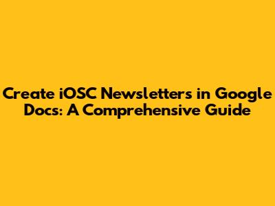 Hey guys, let's dive into creating iOSC newsletters in Google Docs! This guide is designed to walk you through everything, from the initial setup to the final send-off, ensuring your newsletters are not only informative but also visually appealing. We'll cover how to format your content, integrate images and links, and ultimately, how to distribute your newsletter effectively. No coding skills needed β just a little bit of creativity and a willingness to learn. Let's get started!