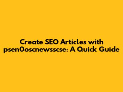 Create SEO Articles With Psen0oscnewsscse: A Quick Guide