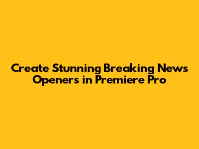 Create Stunning Breaking News Openers In Premiere Pro