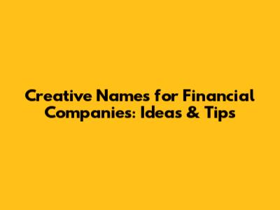 Creative Names For Financial Companies: Ideas & Tips