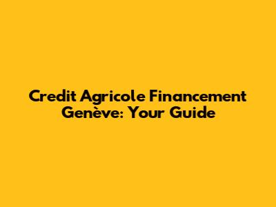 Hey guys! Let's dive into Credit Agricole Financement Genève! If you're in the market for financial solutions in Geneva, Switzerland, you've probably come across this name. This guide is designed to give you the lowdown on what Credit Agricole Financement Genève offers, who they are, and whether they might be the right fit for your needs. We'll explore their services, how they operate, and some things to keep in mind when considering them. So, grab a coffee, and let's get started!