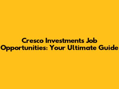 Cresco Investments Careers: Find Your Dream Job