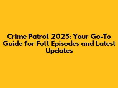 Crime Patrol 2025: Full Episodes & Latest Updates