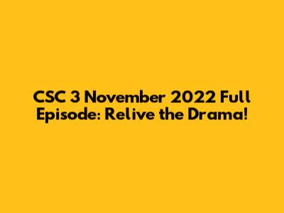 The CSC 3 November 2022 full episode is definitely worth the watch. Its engaging storyline, relatable characters, and stunning visuals make it a standout in the series. Happy watching, and I hope you enjoy every second of it!