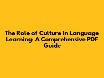 Culture's Role In Language Learning: A PDF Guide