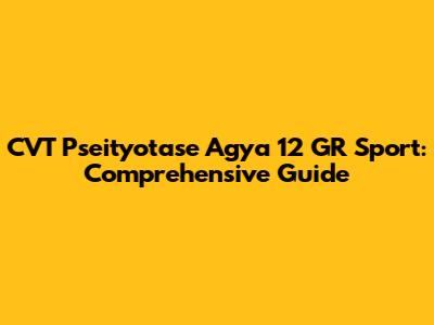CVT Pseityotase Agya 12 GR Sport: Guide & Troubleshooting