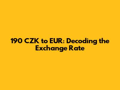 Hey guys! Ever wondered how much 190 Czech Koruna (CZK) is worth in Euros (EUR)? Well, you're in the right place! This guide breaks down the conversion process, giving you the lowdown on the current exchange rates and everything you need to know about converting your CZK to EUR. Whether you're planning a trip to Europe, managing international finances, or just curious, understanding currency conversions is super important. We'll explore the factors affecting the exchange rate, the easiest ways to convert your money, and some handy tips to get the best value for your 190 CZK. Let's dive in and make sure you're clued up on everything related to converting your Czech Koruna!