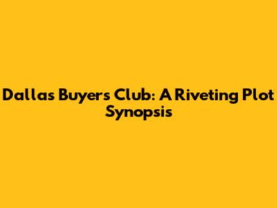 Dallas Buyers Club: A Riveting Plot Synopsis