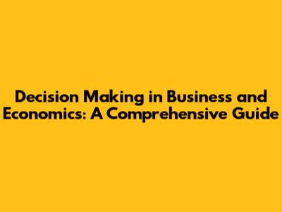 Decision Making In Business And Economics: A Comprehensive Guide
