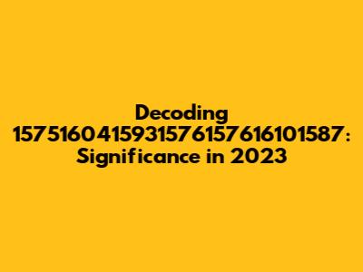 Decoding 1575160415931576157616101587: Significance In 2023