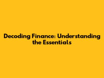 Decoding Finance: Understanding The Essentials
