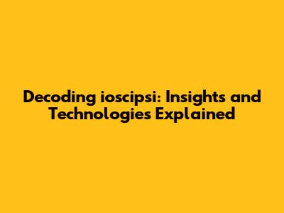 Decoding Ioscipsi: Insights And Technologies Explained