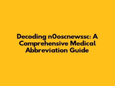 Decoding N0oscnewssc: A Comprehensive Medical Abbreviation Guide