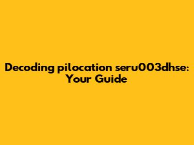 Decoding Pilocation Seru003dhse: Your Guide