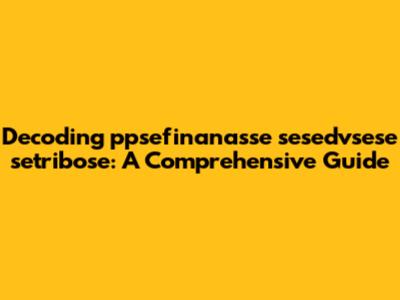 Alright, guys, let's dive headfirst into this intriguing topic: ppsefinanasse sesedvsese setribose. Now, I know what you're thinking – what on earth is that? Well, buckle up because we're about to embark on a journey to unravel this mystery. This guide will break down everything you need to know, making it easy to understand and, dare I say, even a little bit fun. So, grab your metaphorical magnifying glasses, and let's get started!