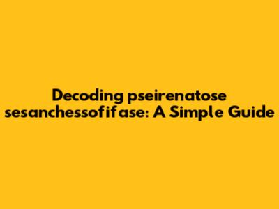 Decoding Pseirenatose Sesanchessofifase: A Simple Guide
