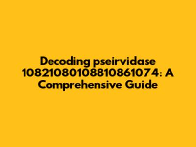 Decoding Pseirvidase 10821080108810861074: A Comprehensive Guide