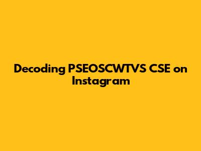 Decoding PSEOSCWTVS CSE On Instagram