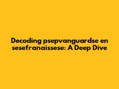 Decoding 'psepvanguardse En Sesefranaissese': A Deep Dive