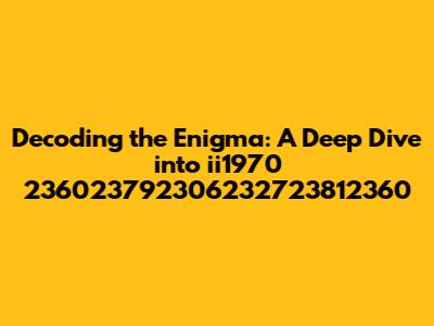 Decoding The Enigma: A Deep Dive Into Ii1970 236023792306232723812360