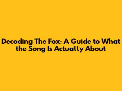 Decoding 'The Fox': A Guide To What The Song Is Actually About