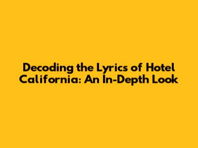 Decoding The Lyrics Of Hotel California: An In-Depth Look
