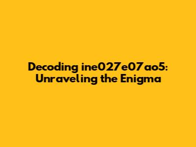 Decoding The Mystery Of Ine027e07ao5: A Comprehensive Guide