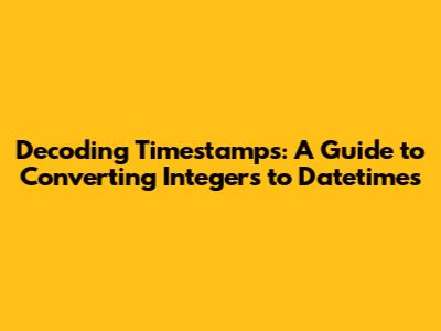 Decoding Timestamps: A Guide To Converting Integers To Datetimes