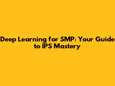 Deep Learning For SMP: Your Guide To IPS Mastery