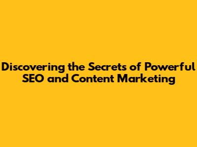 Discovering The Secrets Of Powerful SEO And Content Marketing