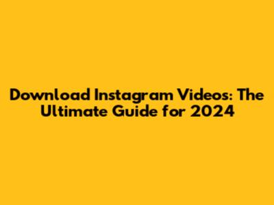 Download Instagram Videos: The Ultimate Guide for 2024