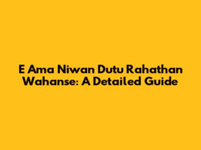 Understanding the Basics of E Ama Niwan Dutu Rahathan Wahanse