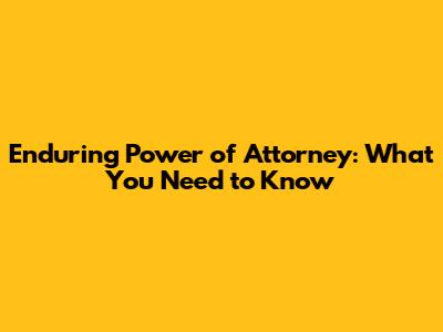 Enduring Power Of Attorney: What You Need To Know