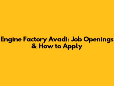 Engine Factory Avadi: Job Openings & How To Apply