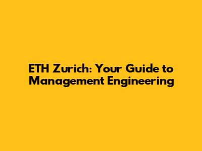 ETH Zurich: Your Guide To Management Engineering