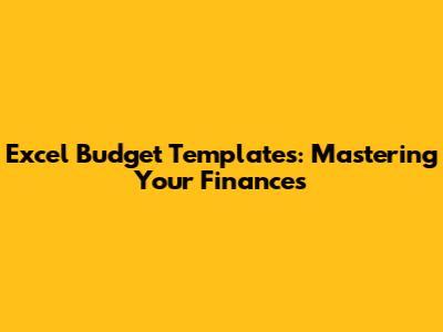 Excel Budget Templates: Mastering Your Finances