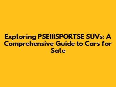 Top PSEIIISPORTSE SUV Models for Sale