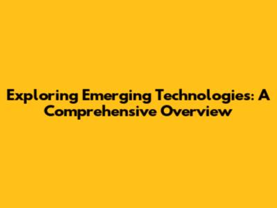 Exploring Emerging Technologies: A Comprehensive Overview