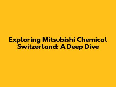 Unveiling Mitsubishi Chemical Switzerland: What's the Deal?