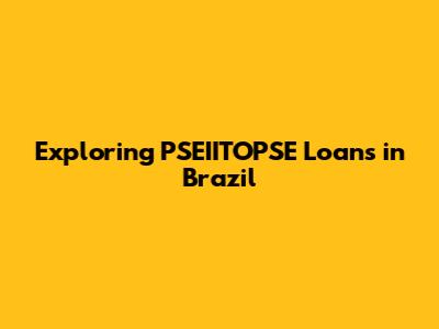 Hey guys! Let's dive into something kinda complex but super important: PSEIITOPSE loans in Brazil. I know, the name might sound like a tongue-twister, but trust me, understanding these can be a game-changer if you're looking for financial solutions in the Brazilian market. This article is your friendly guide, breaking down everything you need to know, from what these loans are all about to how they can benefit you. We'll cover the ins and outs, so you can make informed decisions. So, grab a coffee (or a caipirinha if you're feeling fancy!), and let's get started!