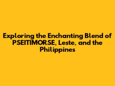 Exploring The Enchanting Blend Of PSEITIMORSE, Leste, And The Philippines
