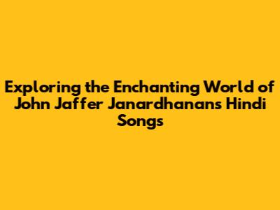 Exploring The Enchanting World Of John Jaffer Janardhanan's Hindi Songs