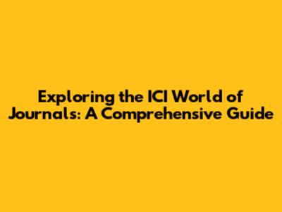 Exploring The ICI World Of Journals: A Comprehensive Guide