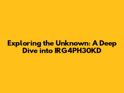 Exploring The Unknown: A Deep Dive Into IRG4PH30KD