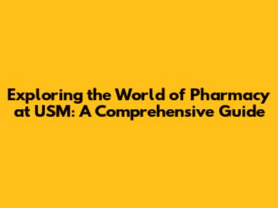 Exploring The World Of Pharmacy At USM: A Comprehensive Guide