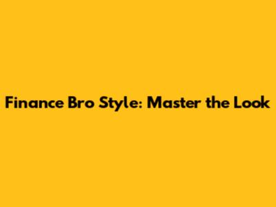 Finance Bro Style: Master The Look