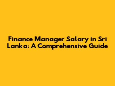 Finance Manager Salary In Sri Lanka: A Comprehensive Guide