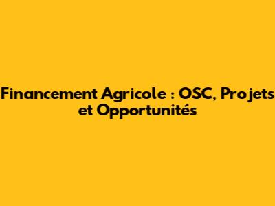 Financement Agricole : OSC, Projets Et Opportunités