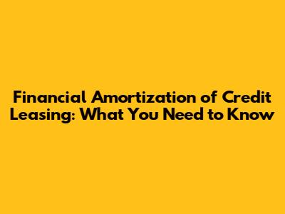 Financial Amortization Of Credit Leasing: What You Need To Know
