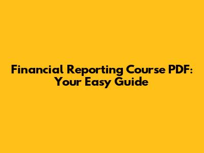 Financial Reporting Course PDF: Your Easy Guide